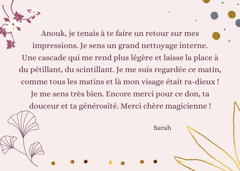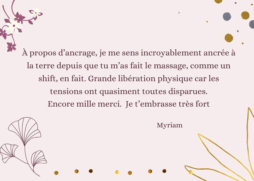 Le massage se pratique sur une table de massage confortable. À la fin de la séance, nous pouvons échanger de nouveau sur ce que vous avez ressenti, si vous le souhaitez.